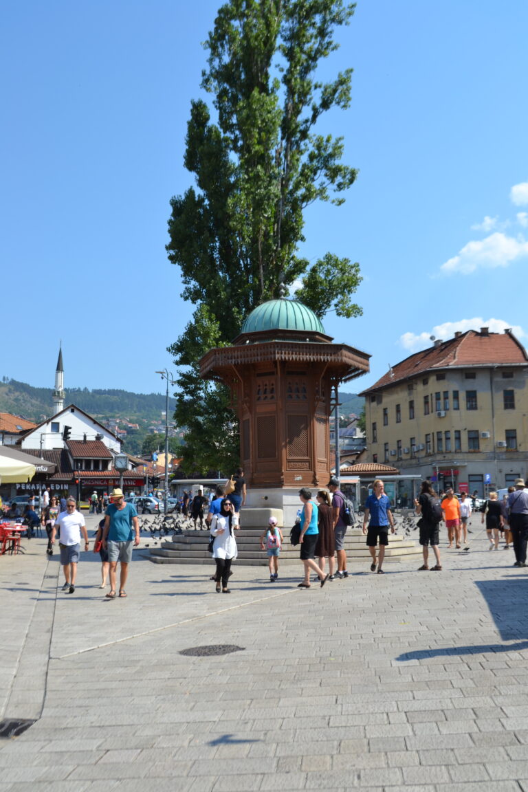 Najbardziej znanym miejscem w Sarajewie jest bez wątpienia Baščaršija serce miasta. W wąskich uliczkach znajdziecie sklepy, kawiarnie i restauracje. Centralnym punktem jest Sebilj to tam często spotykają się miejscowi. Jest to drewniana fontanna w stylu osmańskim zbudowana przez Mehmeda Paszę Kukavicę w 1753 roku. Według lokalnej legendy goście, którzy piją wodę z tej fontanny, wrócą kiedyś do Sarajewa. Na Baščaršiji znajduje się także Meczet Gazi Husrev-bega wybudowany z inicjatywy bośniackiego władcy